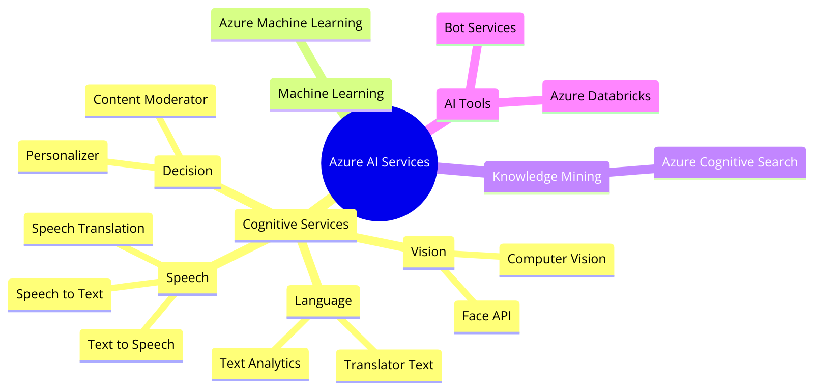 Ezért megkértem a ChatGPT-t hogy rajzolja le, hogy mi az összefüggés az Azure AI Services és az Azure Open AI termékek között, ez már egy tetszetős ábra lett, sztem ezzel már jobban érthető (nekem :) )